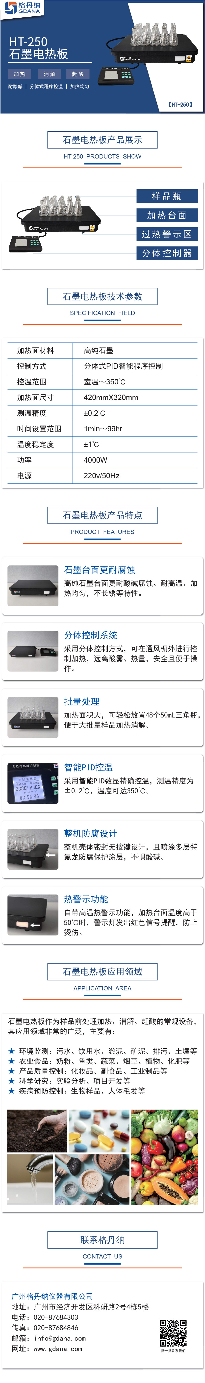 HT-250石墨加熱板(也稱為石墨電熱板)是元素分析樣品前處理實驗中進(jìn)行加熱、消煮、趕酸的通用實驗儀器,格丹納石墨加熱板采用高純石墨材質(zhì)加熱臺面,加熱均勻;同時可進(jìn)行批量樣品消解處理,大大提高工作效率;PID分體式智能控制,實驗人員可遠(yuǎn)離酸霧及熱量實驗安全可靠。