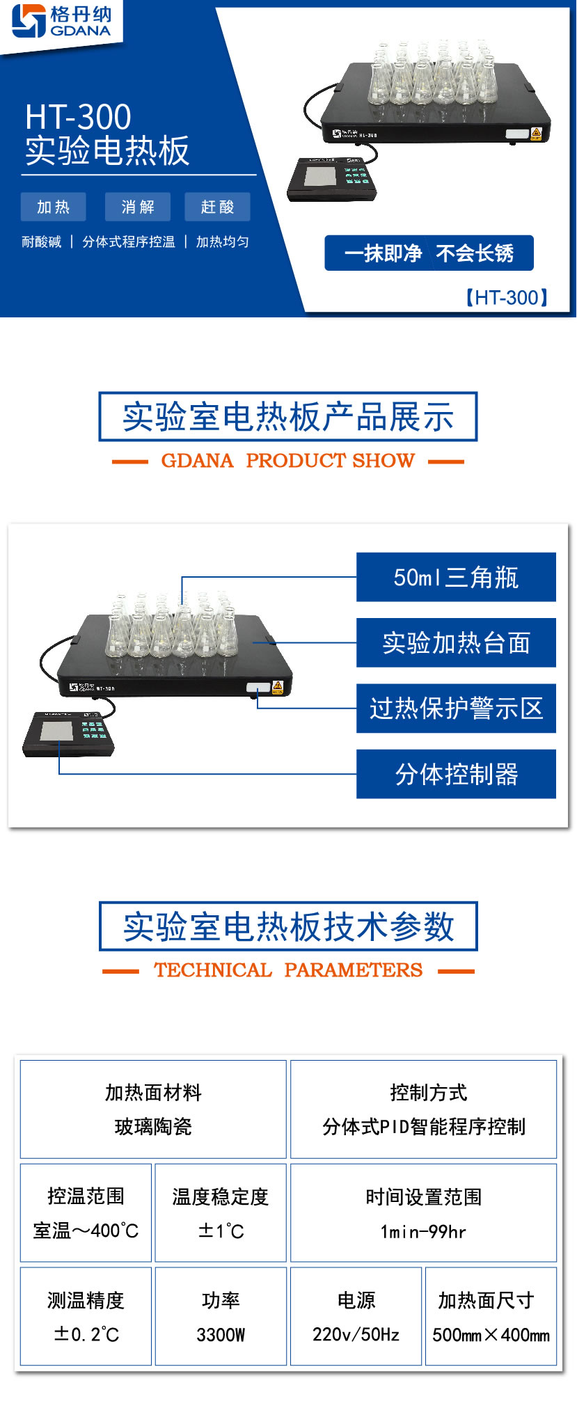 HT-300實驗電熱板是一種專用于理化實驗對各類分析樣品作加熱預處理的恒溫裝置。