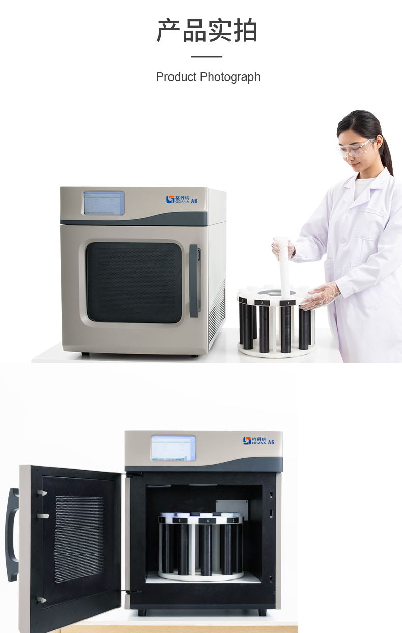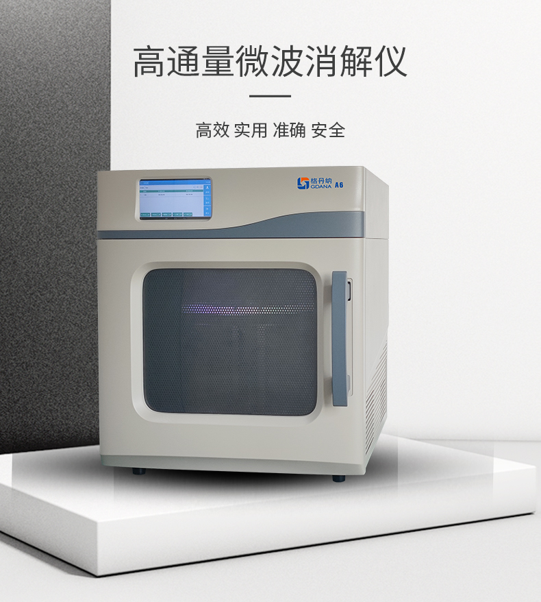 格丹納A6微波消解儀具有高效、實用、準確安全的前處理設備,是輔助AAS、AFS、ICP、ICP-MS元素分析和GC、HPLC、GCMS等分析前消解的好幫手,20分鐘內完成大部樣品的處理,如消解、萃取、蛋白水解、濃縮、干燥和有機合成等。