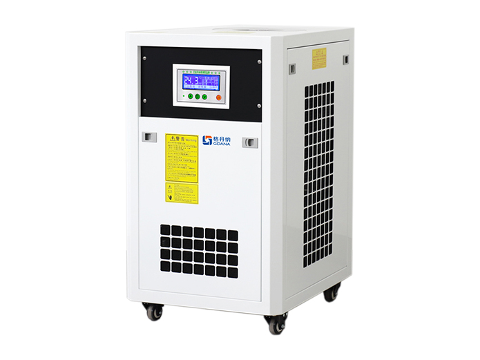 冷水機制冷系統將水箱內的水冷卻,而后機器內部的水泵把低溫的水注入需要冷卻的設備內。水帶走機器內部的熱量,變成高溫的水后回流到水箱進行降溫,如此循環交換冷卻,起到為設備冷卻的作用。