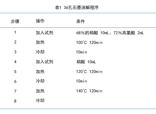 試劑:鎳、鉛單標準儲備液:500mg/L,使用時稀釋成適當濃度的標準溶液,國家標準物質研究中心;HNO:優級純;雙氧水、高氯酸、磷酸二氫銨:分析純;去離子水。