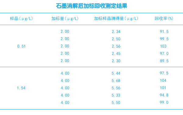 采用石墨消解法對固體廢物浸出液進行消解,操作方法簡便,儀器使用成本低;同時可以對25個樣品進行消解;無線控制系統(tǒng),讓實驗人員遠離實驗過程酸霧對人體直接醺到,實驗結(jié)果測定消解液中的汞檢出限低、測量范圍寬、重復性好,滿足固廢浸出液中總汞的測定要求。