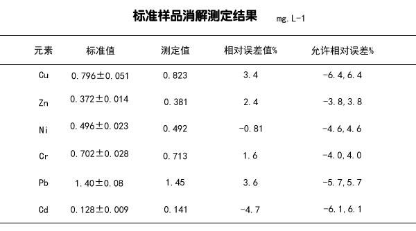 標(biāo)準(zhǔn)樣品消解后測定結(jié)果